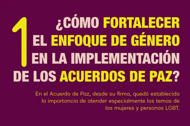 Descargue la infografía sobre las recomendaciones que le hacemos a los candidatos sobre como fortalecer el enfoque de género en la implementación de los Acuerdos de Paz, especialmente los temas de las mujeres y personas LGBT Descargar documento