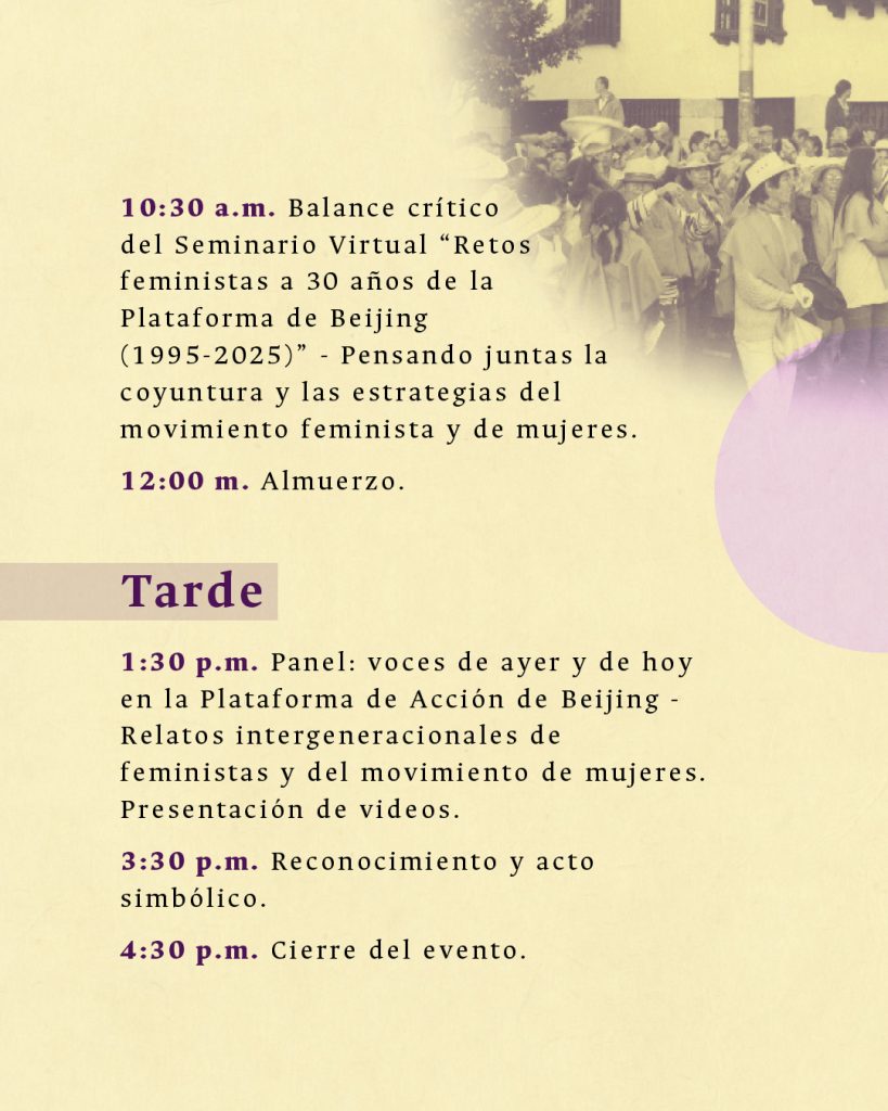 Este jueves 18 de septiembre, varias feministas y académicas de la región, en un encuentro intergeneracional harán el balance de estas tres décadas de acción colectiva por los derechos de todas las mujeres, a la luz de la Plataforma de Acción de Beijing.
