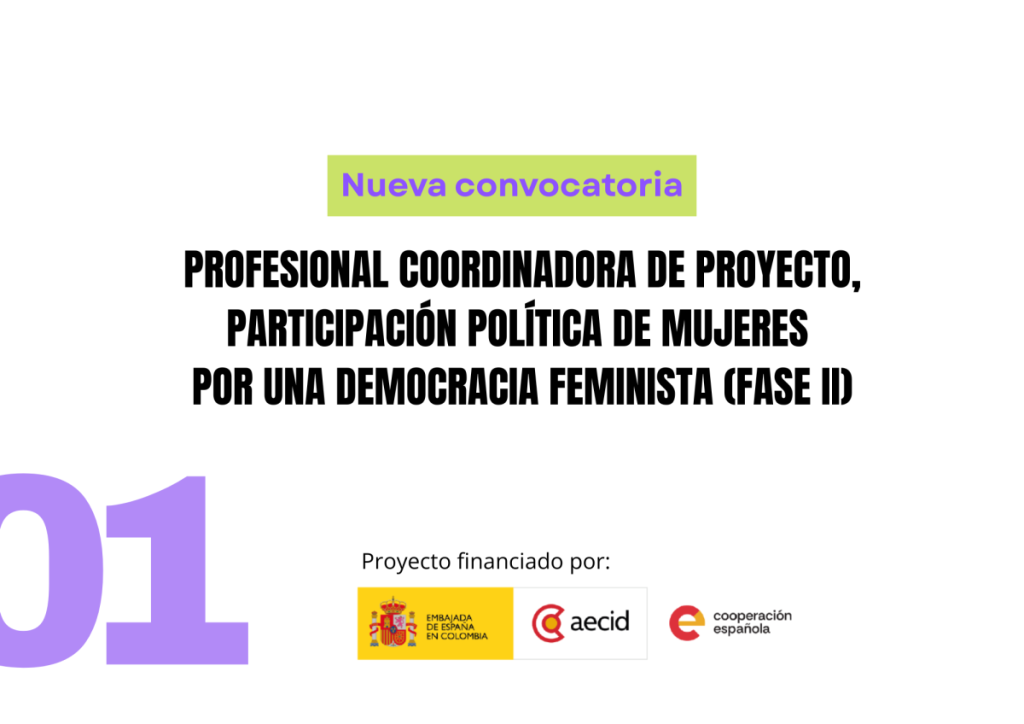 La Corporación Humanas, en alianza con la Agencia Española de Cooperación Internacional para el Desarrollo (AECID), invita a mujeres profesionales a postularse para la coordinación del proyecto “Participación Política de las Mujeres por una democracia feminista (Fase II)”, orientado a fortalecer el liderazgo, la participación política y la construcción de paz con organizaciones de mujeres […]