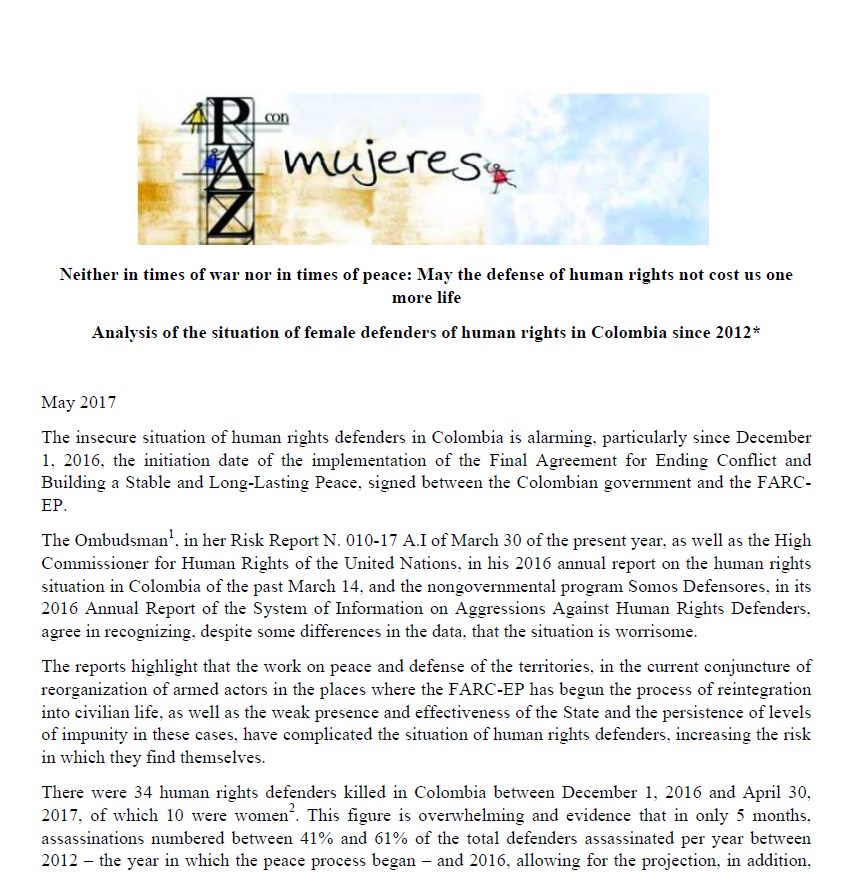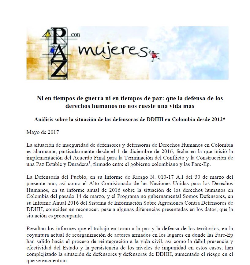 En conmemoración del día internacional de las mujeres queremos hacer un homenaje a las defensoras como trabajadoras por los derechos humanos, enfatizar sobre los riesgos particulares que enfrentan en el ejercicio de su liderazgo y reiterar nuestro llamado de atención al Estado colombiano para que salvaguarde su labor y proteja sus vidas.